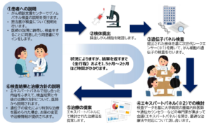 特定病院のがんゲノム医療中核拠点病院等におけるがん遺伝子パネル検査の流れは以下の通りです。