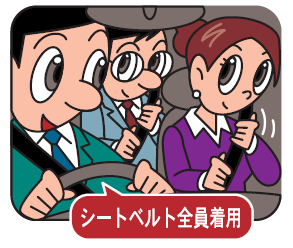 車を運転するときは、運転者自身がシートベルトを着用するとともに、助手席や後部座席の同乗者にもシートベルトを正しく着用させる必要があります。