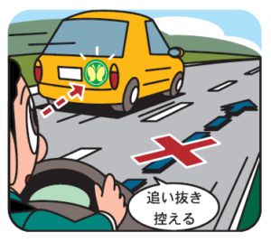 幅寄せや割り込みという運転行為は、状況によっては「妨害運転」(あおり運転)に該当しかねない危険な行為ですから、表示自動車だけでなく、他の車に対しても、幅寄せや割り込みをしないようにする必要があります。