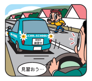 仮免許運転者標識を表示した車の多くは、自動車教習所の教習指導員が同乗しており、規制速度を守る、黄信号で停止する、横断歩道に横断しそうな歩行者がいるときは横断歩道の手前で停止するなど、交通ルールに従った安全運転の基本を実践しています。